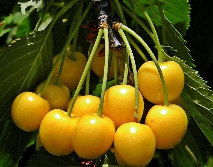 Саженцы черешни Золотая порадуют невероятным размером ягод и их ярко-желтой привлекательной окраской. Благодаря медово-сладкому вкусу, ягоды нередко используются в качестве полезного освежающего десерта. Крупномеры черешни начинают приносить плоды на 3-4 год посадки. Ягоды этого сорта по праву считаются одними из наиболее вкусных.