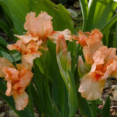 Ирис карликовый Tickled Peach - это удивительное растение с лососево-оранжевыми цветками, которые привлекают внимание своей нежной окраской. Этот сорт ириса pumila порадует вас своей компактной формой и высотой до 30 см, что делает его идеальным выбором для оформления горшков, клумб и рабаток. Листья данного растения имеют интересную форму и придают ему особый шарм.