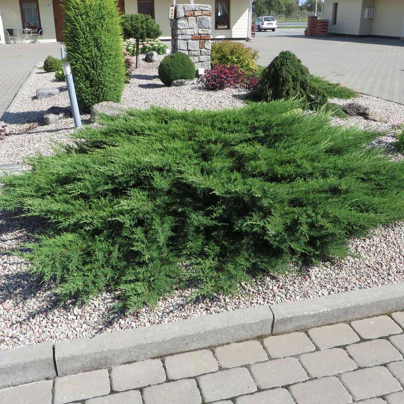 Саженцы можжевельника горизонтального Принц Уэльский (Prince of Wales) наиболее популярны для оформления газонов и клумб, а также используются в контейнерных формах.