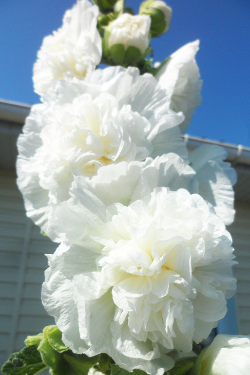 Шток-роза белая - это изысканное растение с великолепными белыми цветками, которые напоминают нежные облака на голубом небе. Ее ствол прочный и прямой, достигает высоты до 200 см, что делает ее идеальным украшением для вашего сада или огорода. Листья этого растения имеют форму ланцета и создают уютную зеленую атмосферу вокруг.