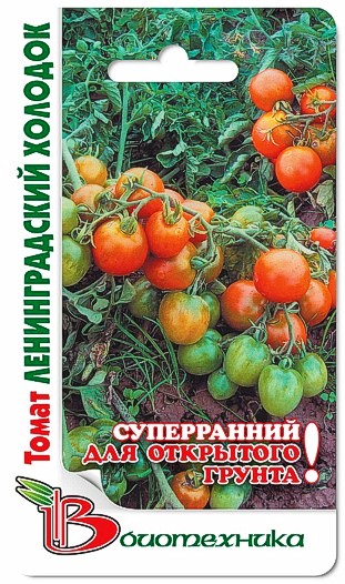 Семена томата "Ленинградский холодок" (Leningradskij holodok) – сорт, который отличается исключительной холодостойкостью. Посев на рассаду осуществляется в апреле, а пересадку в открытый грунт – в июне. Сорт суперранний. Массовый сбор урожая происходит в первых числах августа. На кусте высотой 30-35 см формируется по 3-4 кисти. На каждой созревает по 7-8 плодов. Помидорки обратно-яйцевидной формы с плотной кожицей красного цвета. Они обладают великолепными вкусовыми характеристиками и прекрасным ароматом. Урожайность с одного куста может достигать 3 кг.